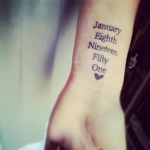 Tattooing your pet’s birthdate or adoption date is a subtle way to celebrate their presence in your life. This design often features numerical dates in elegant fonts, accompanied by small decorative elements like a paw print, heart, or star.