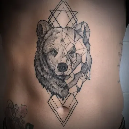 A geometric pet tattoo combines clean lines and shapes to create a modern and abstract representation of your pet. This design often includes triangles, circles, and other geometric elements arranged to form your pet’s face or silhouette.