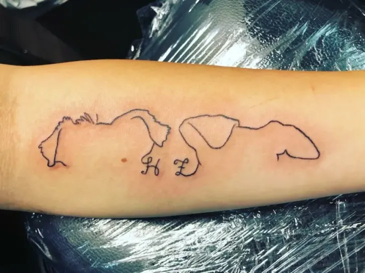 Using your pet’s initials as a tattoo design is a minimalistic yet personal way to honor their memory or celebrate your bond. This design often features elegant script or bold block lettering, and it can be accompanied by small decorative elements like a heart, paw print, or star.