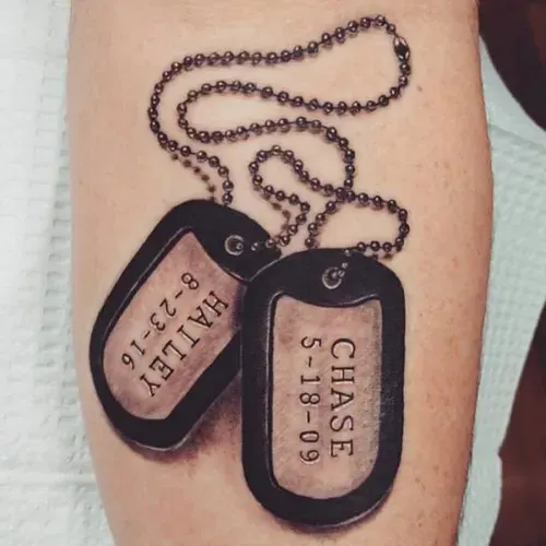 It’s an ideal choice for larger placements like the forearm, shoulder, or back, allowing enough space for intricate detailing. Adding the pet’s name or a special date to the tag enhances the tattoo’s emotional significance.