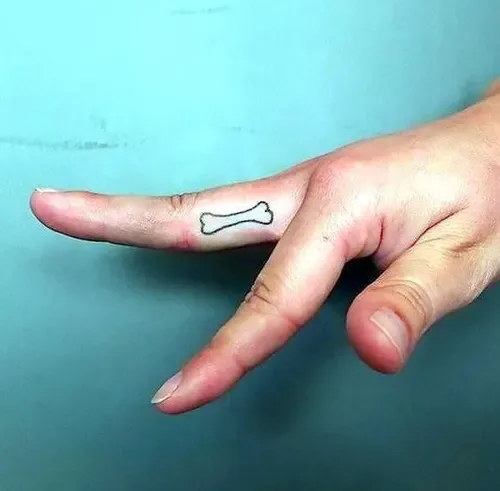 A tiny bone tattoo is a simple and playful design that’s perfect for dog lovers. This design often features a small outline or silhouette of a bone, sometimes paired with a paw print or initials.