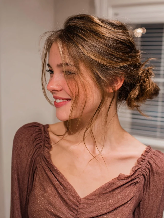 - Pull out a few front strands for softness.