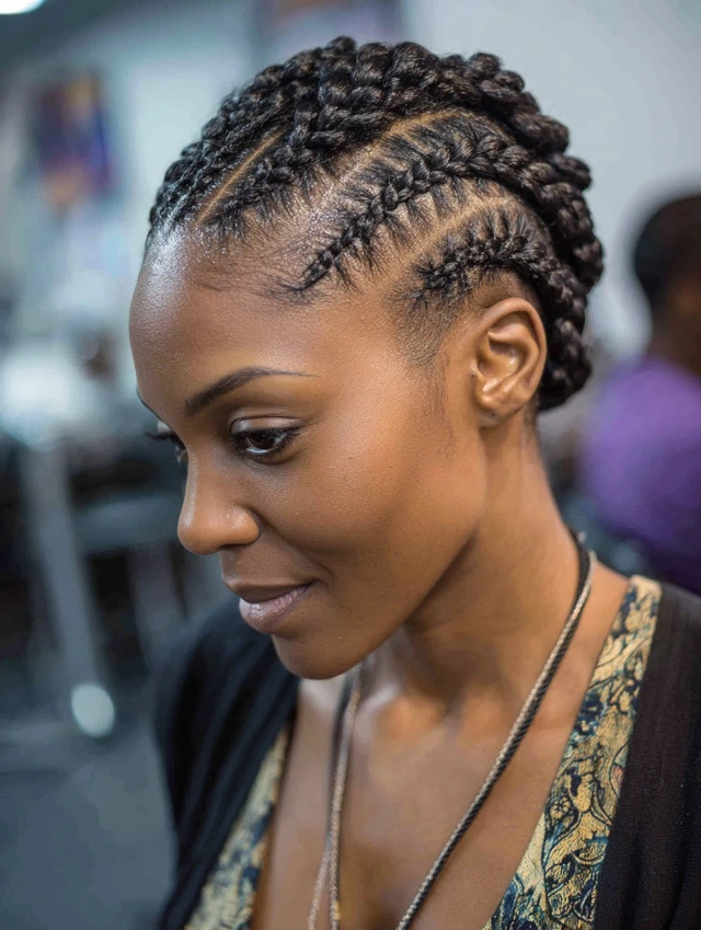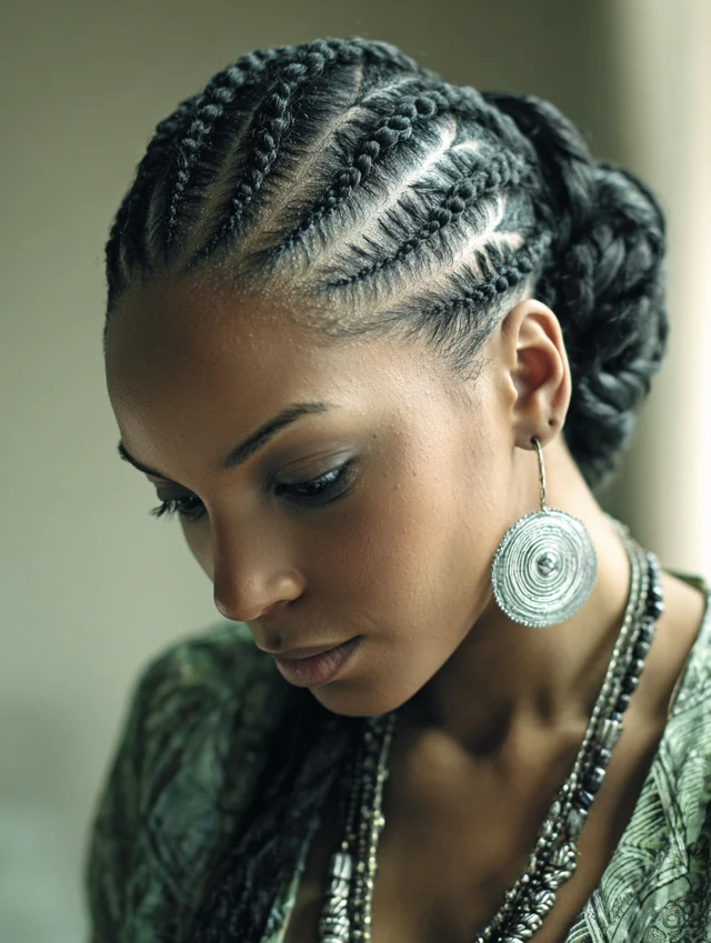 • Cornrows: Close-to-scalp braids in creative or classic patterns