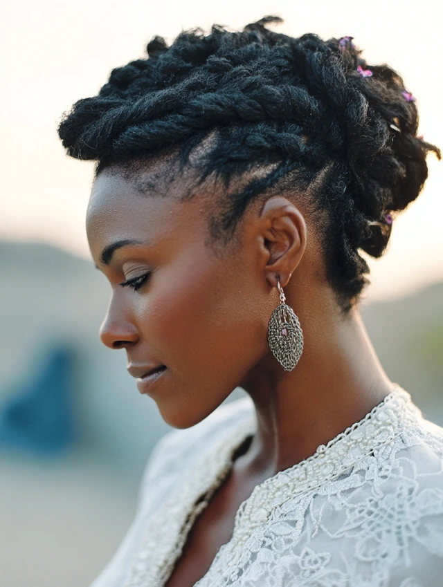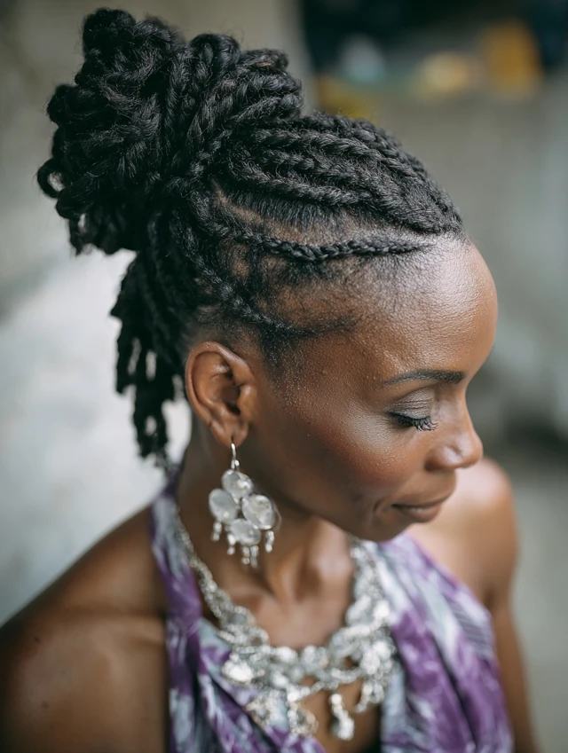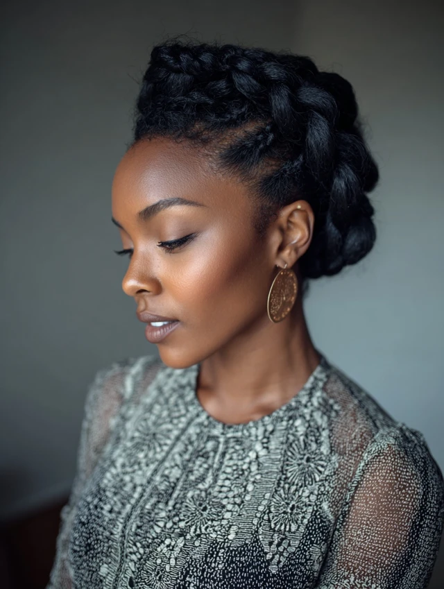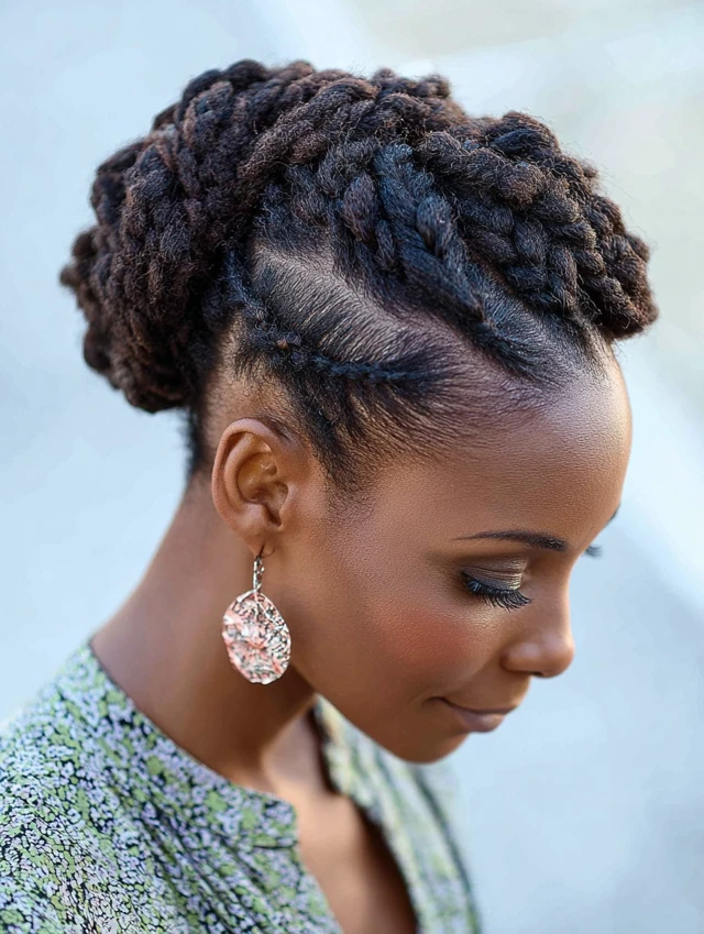 • Braided Updos: Mini buns, crowns, or twists made with short braids