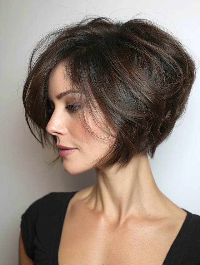 If your hair feels flat or thin, a stacked bob can transform your look with minimal effort.
