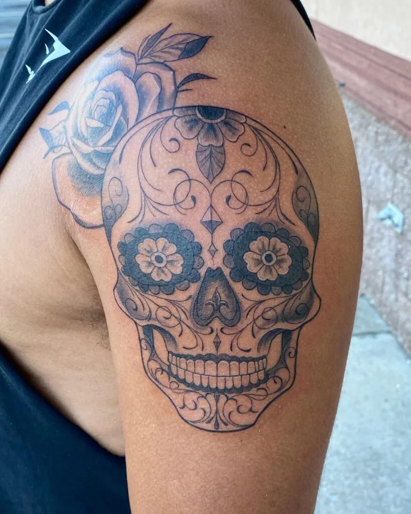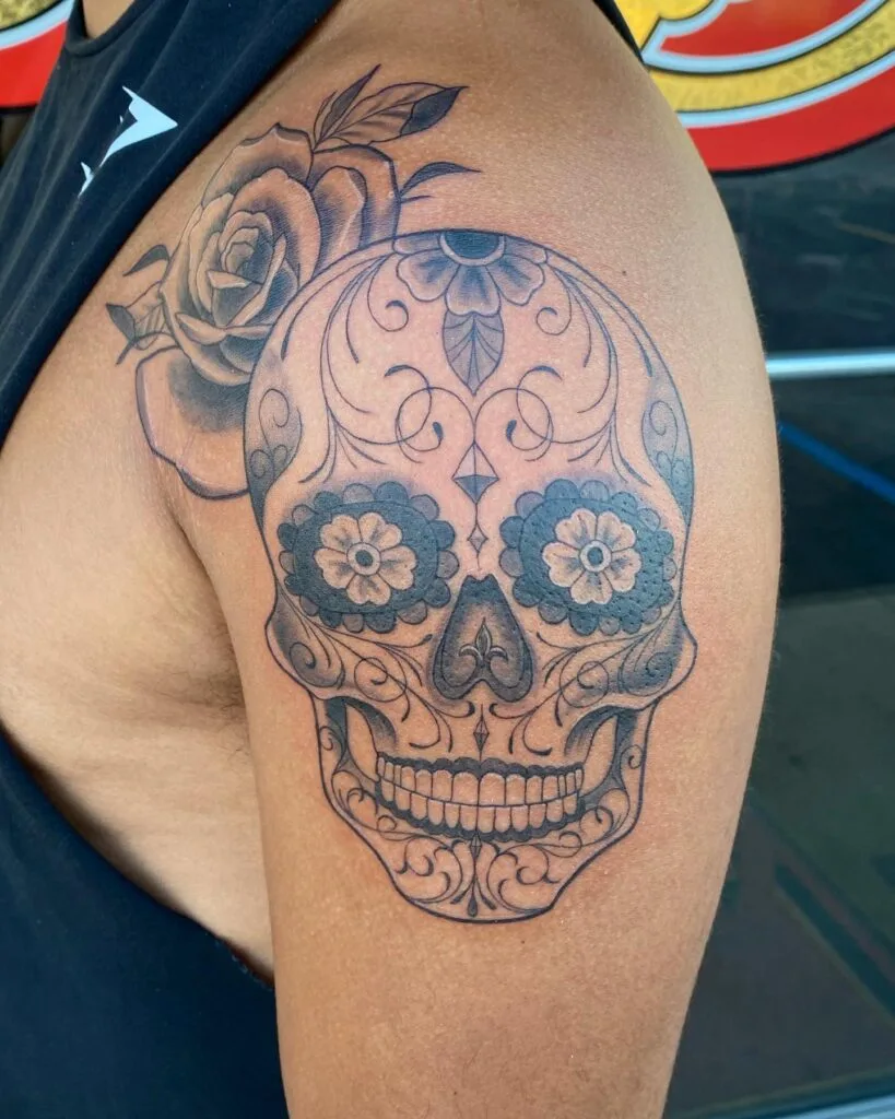 4. Shoulder Rose Sugar Skull Tattoo