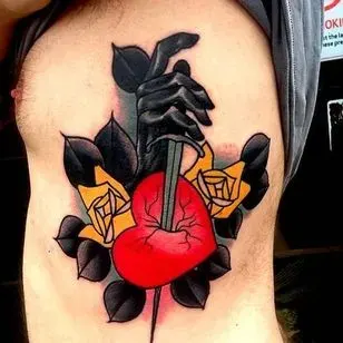 The sword through heart tattoo is a powerful symbol of sacrifice, love, and heartbreak. The sword represents protection, strength, and the willingness to fight for something or someone, while the heart symbolizes love, emotion, and vulnerability. The sword piercing the heart can represent the pain of love, the sacrifice of one’s feelings, or the emotional toll of standing by a cause. It can also symbolize the internal conflict of love and loss, a reminder that even in moments of heartache, there is strength in enduring and overcoming. This tattoo is deeply personal, often chosen by individuals who have experienced emotional pain or significant personal challenges. The heart may be depicted as bleeding, representing the emotional cost, or in a more stylized form to enhance the symbolism of the sword’s impact. This tattoo is commonly placed on the chest, directly over the heart, to emphasize its emotional significance, or on the forearm, where it can be a visible reminder of personal resilience in the face of love’s trials.