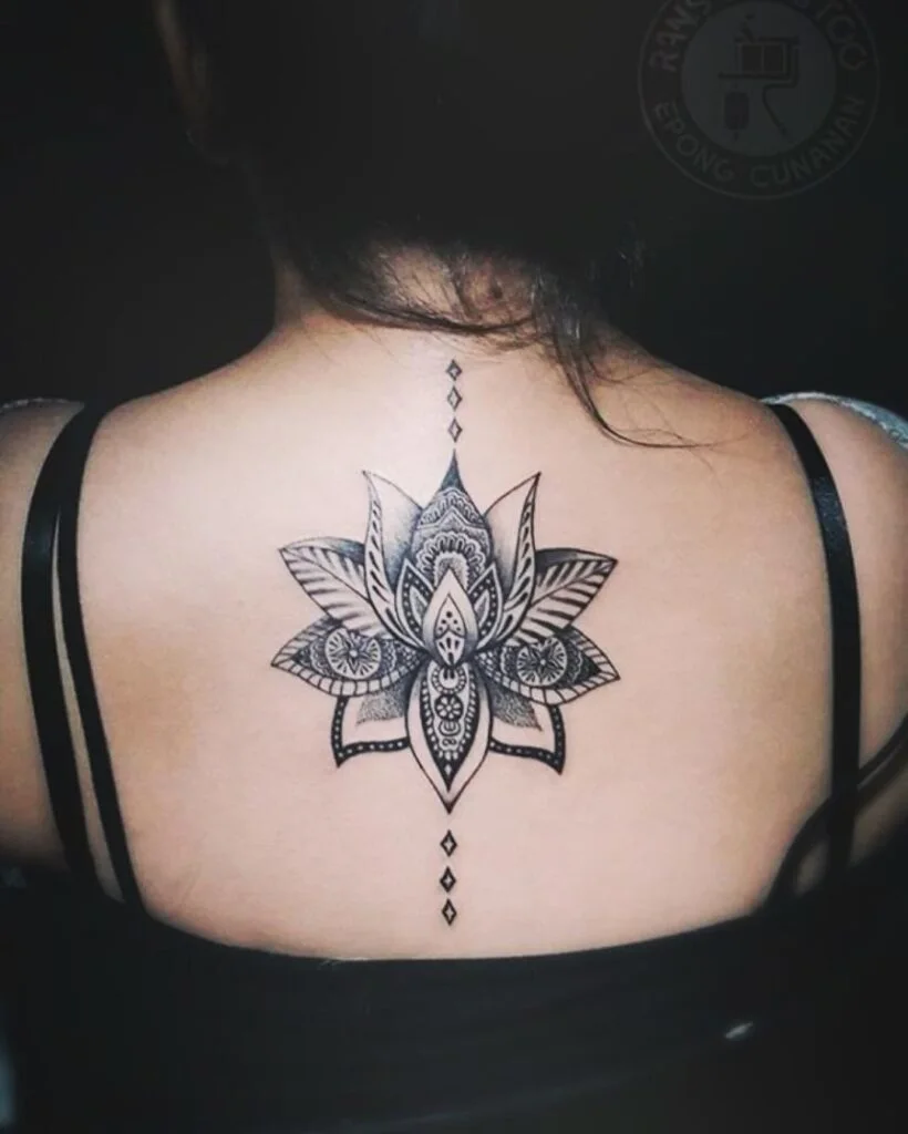 5. Mandala-Inspired Lotus Back Tattoo