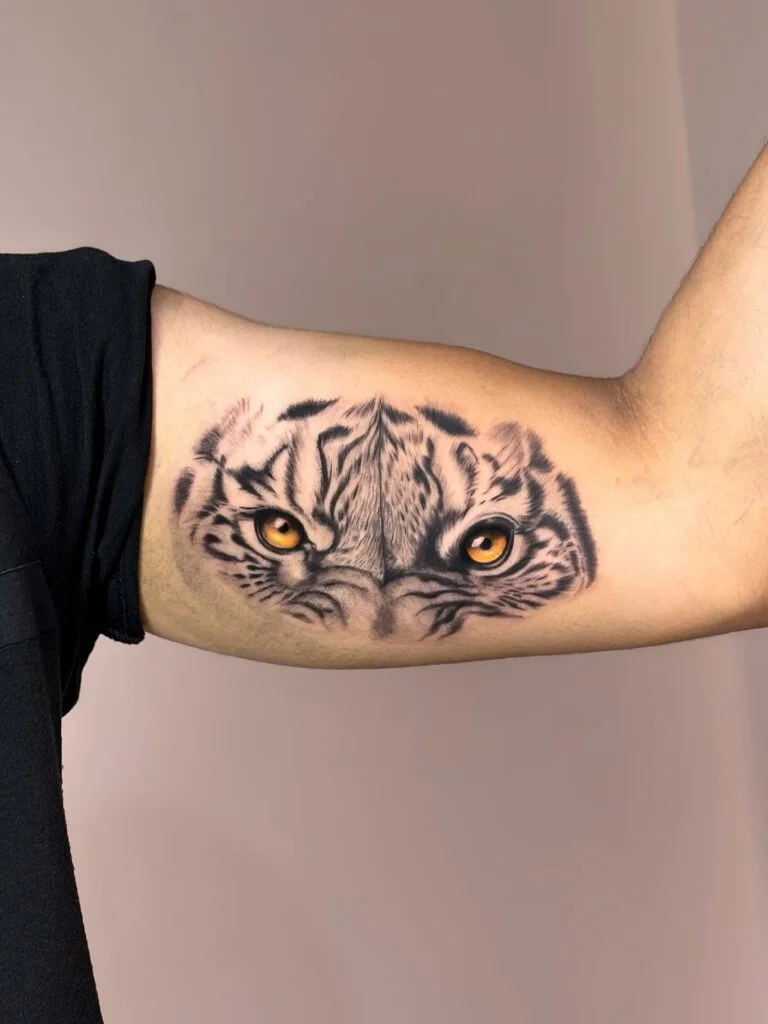 5. Tiger Eyes Bicep Tattoo