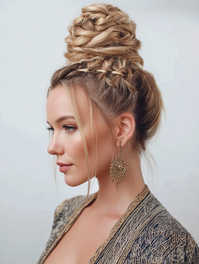 3. Top Knot with Braids