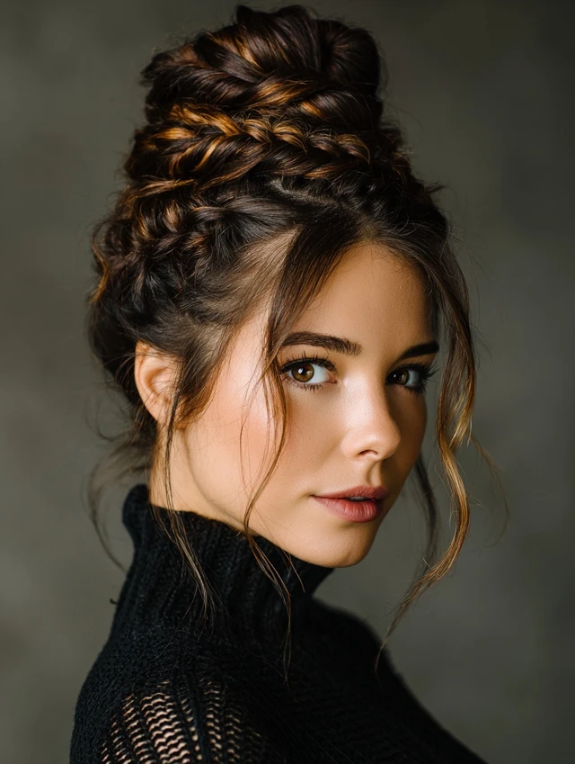 Top knot buns thrive on movement, volume, and accents. Enhance them with: