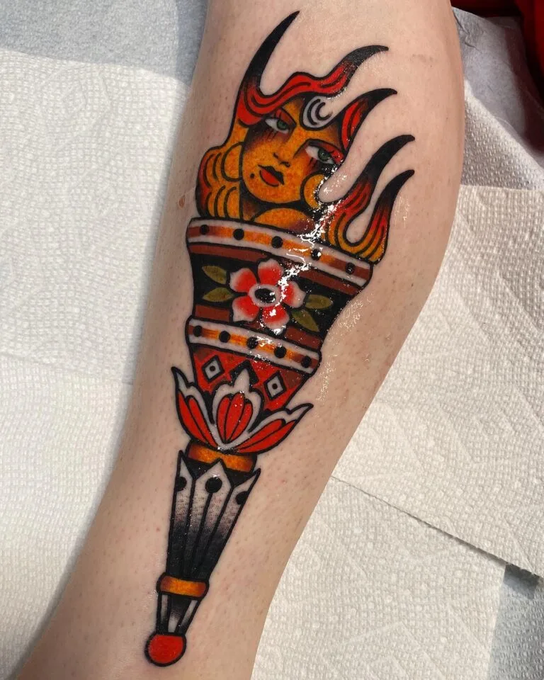 The forearm is one of the most popular placements for traditional tattoos. It’s a canvas that works well for bold lines, symmetrical designs, and detailed shading. Modern interpretations often wrap the design around the arm, or integrate fine-line elements between the bold imagery.