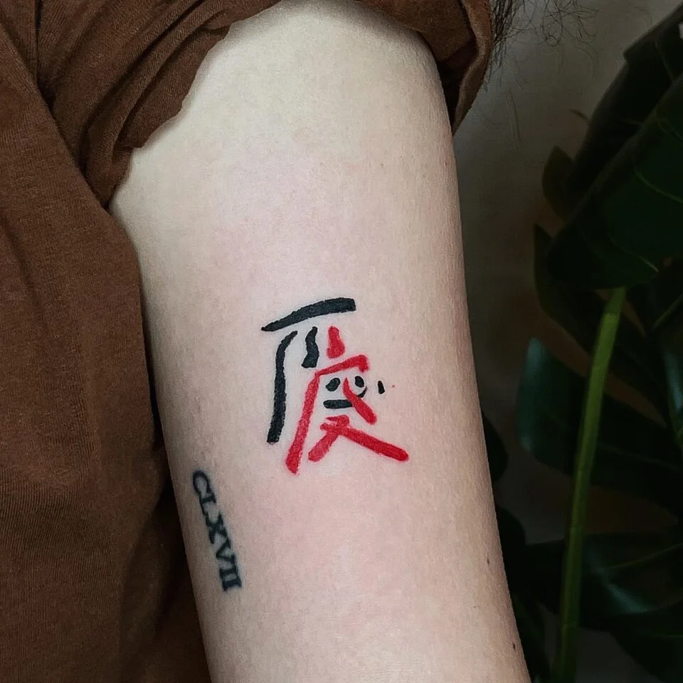 Tattoos like this often celebrate individuality and personal stories, representing the unique perspective children bring into the world. Its strong contrast between red and black adds intensity, symbolizing passion, energy, and balance. This tattoo not only serves as a form of self-expression but also highlights the unfiltered beauty of youthful imagination captured in ink.