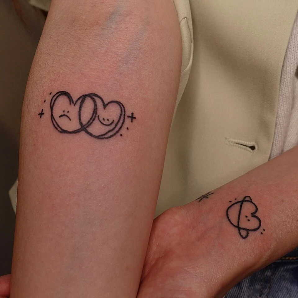 Each heart represents an emotion—happiness, sadness, surprise—reflecting the wide range of feelings children experience daily. The design celebrates emotional honesty, imagination, and growth. By capturing these doodle-like hearts in ink, the tattoo becomes a reminder to embrace life’s moods with the same openness and innocence that children naturally express.