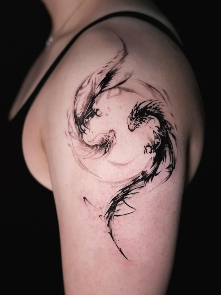 6. Shoulder Wave and Dragon-Inspired Tattoo